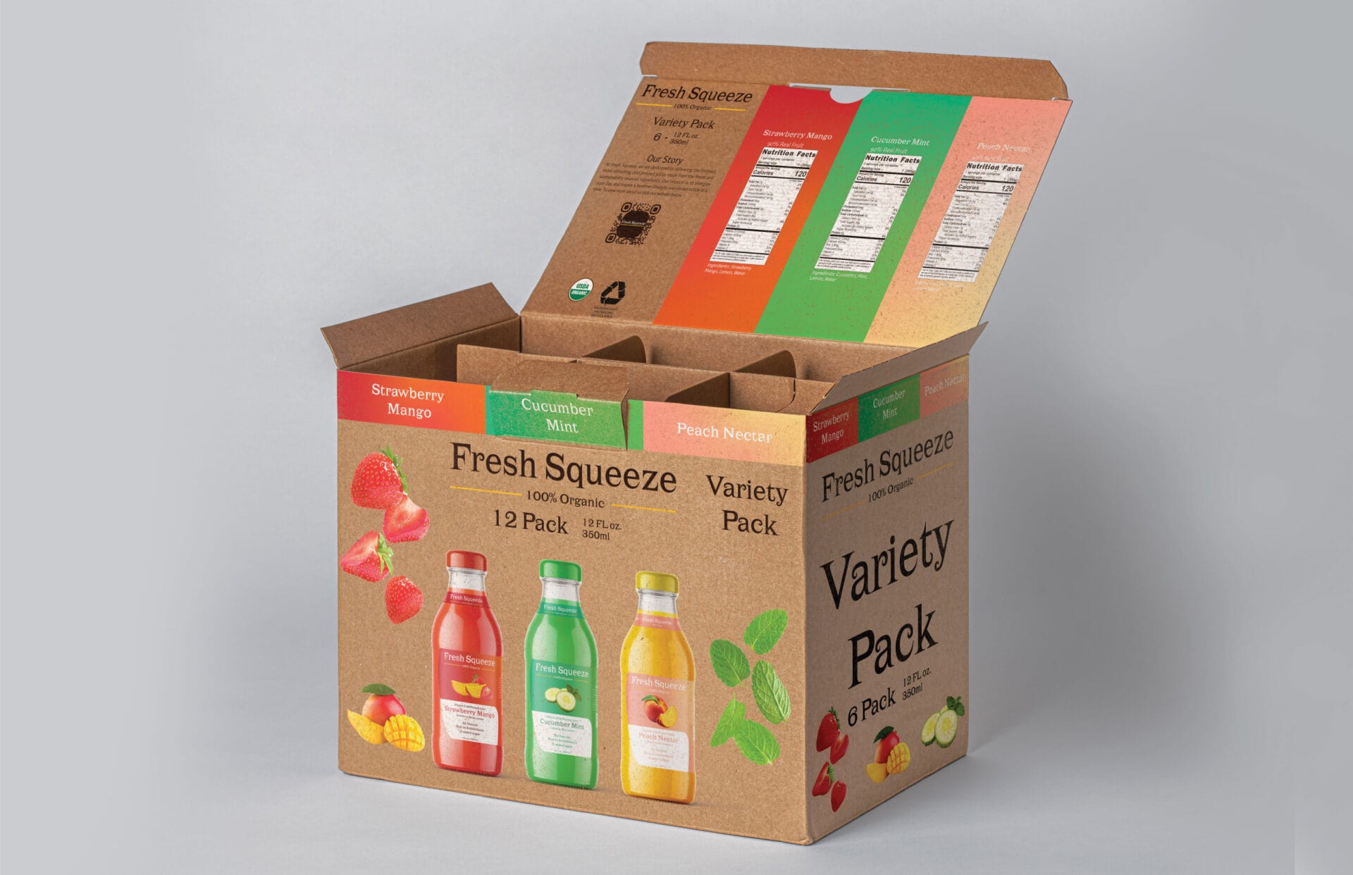 The brand name was chosen to evoke nature and freshness, highlighting real fruit slices that emphasize genuine ingredients, fresh flavor, and a health-focused appeal. Strong callouts reinforce the core themes of freshness and wellness.